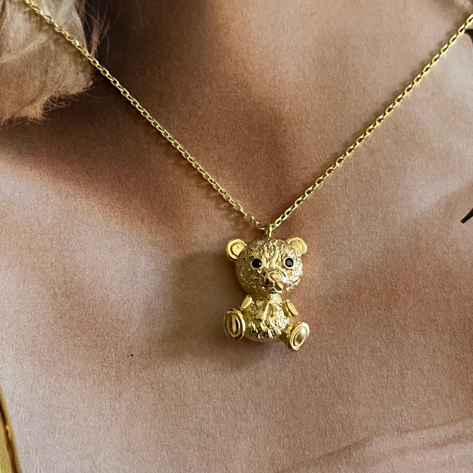 Ayı Figürlü Gold Gümüş Kolye – Sevimli ve Modern Tasarım