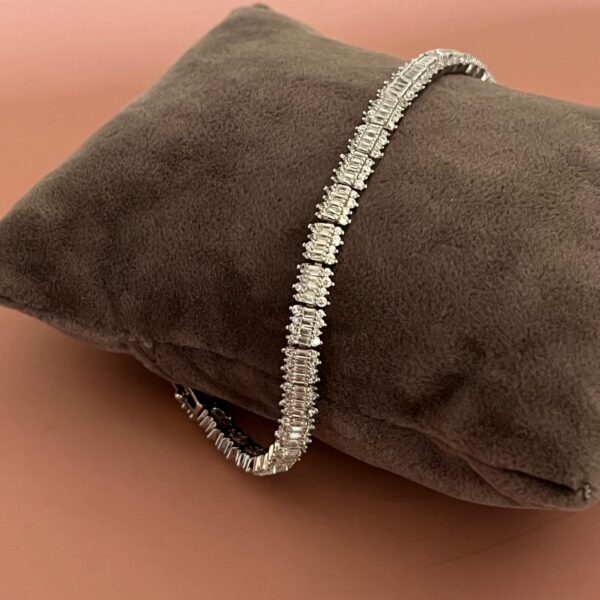 Oksitlenmeye karşı dayanıklı yapısı sayesinde uzun yıllar ilk günkü parlaklığını koruyan gümüş baget taşlı bileklik, sevdiklerinize hediye etmek için de ideal bir seçimdir. Kombinlerinize sofistike bir dokunuş katmak istiyorsanız, bu göz alıcı tasarımı mutlaka keşfedin.