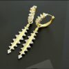 Şıklığı ve zarafeti bir araya getiriyor. 925 ayar gümüş üzerine gold kaplama ile tasarlanan bu modern küpe, hem günlük kombinlerinizde hem de özel davetlerde stilinizi tamamlayan göz alıcı bir aksesuardır. Üçlü sarkıt tasarımıyla hareketli ve ışıltılı bir görünüm sunarken, hafif yapısı sayesinde gün boyu rahatlıkla kullanılabilir.