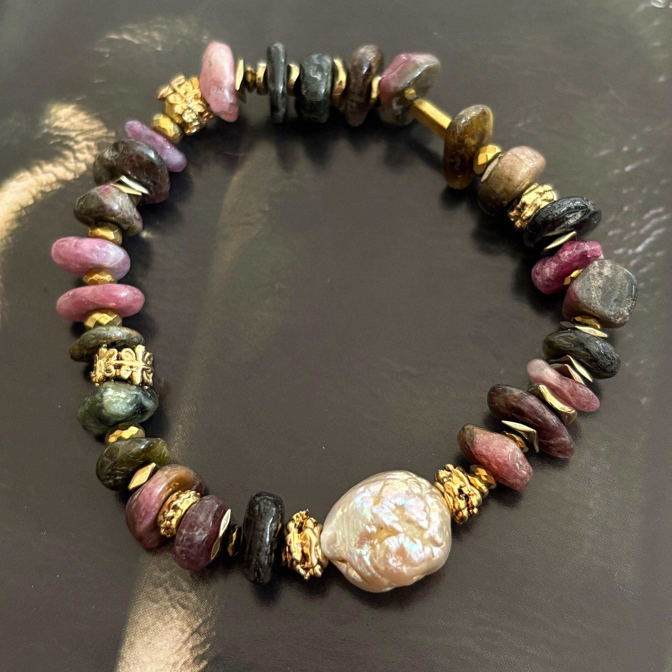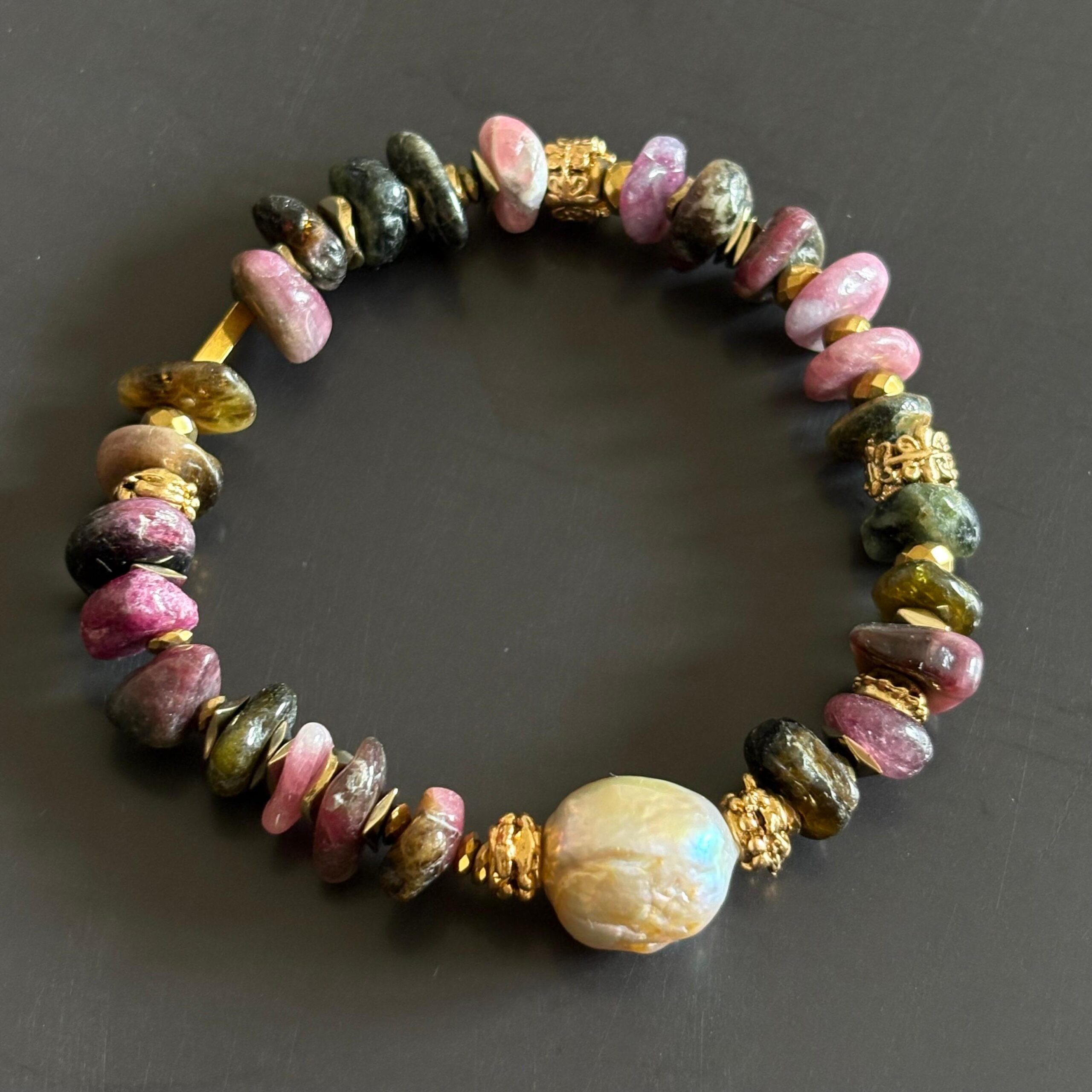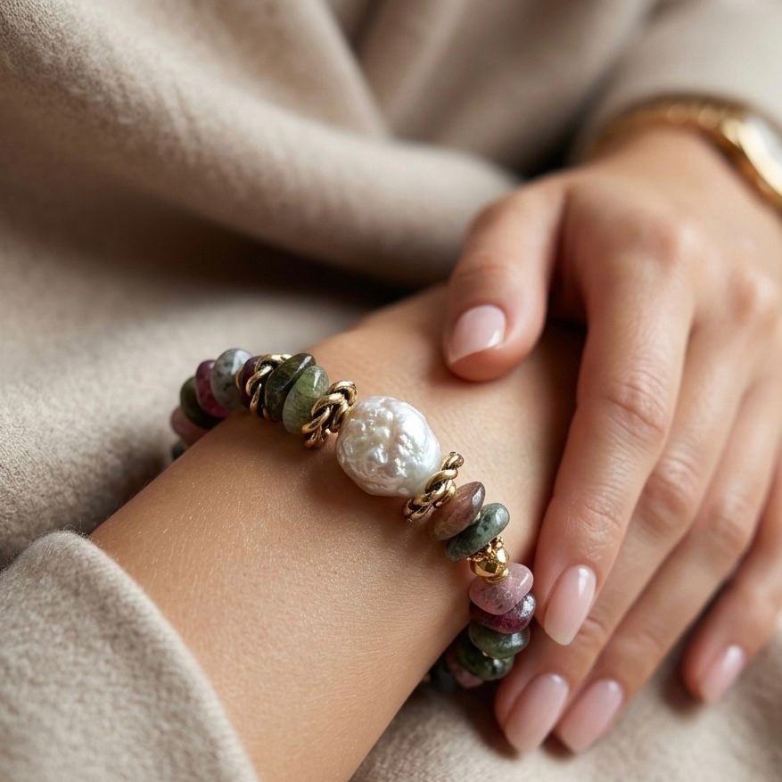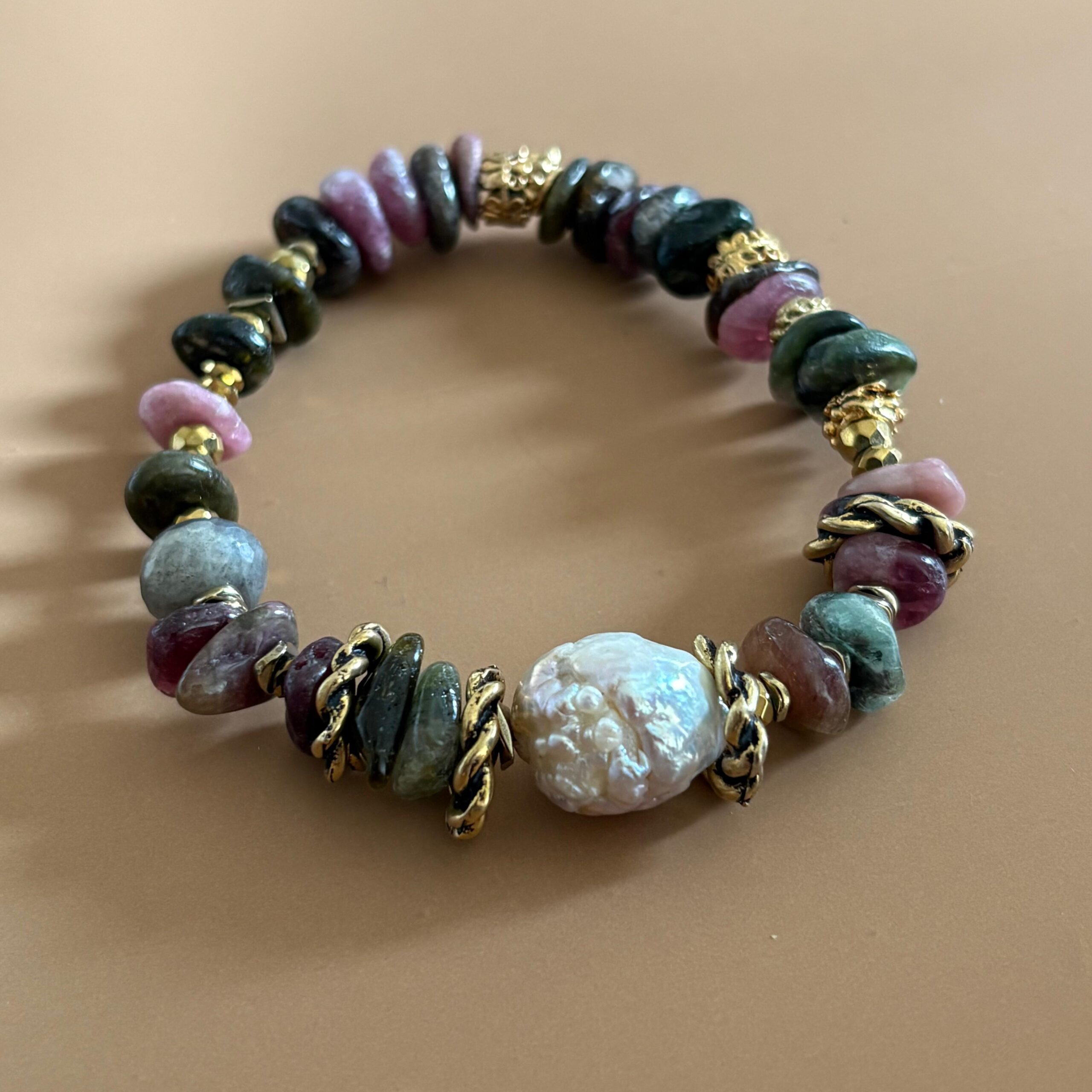 Barok İnci Detaylı Turmalin Doğal Taş Bileklik – El Yapımı Tasarım Bileklik