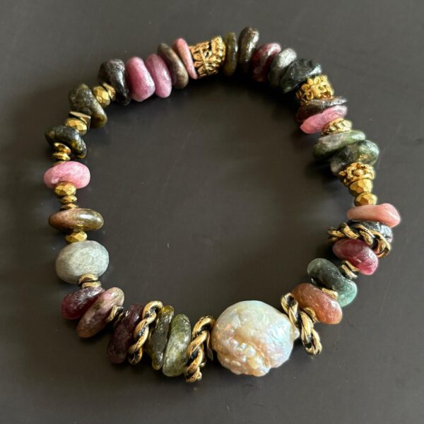 Barok İnci Detaylı Renkli Turmalin Doğaltaş Bileklik