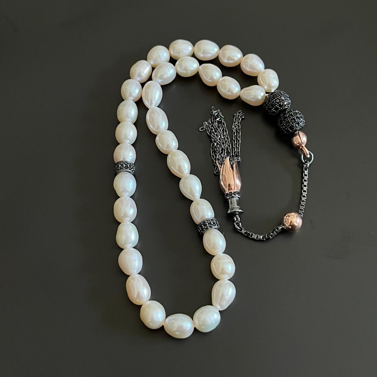 Beyaz İnci Gümüş İmameli Tasarım Tesbih – Saflığın ve Zarafetin En Şık Yansıması