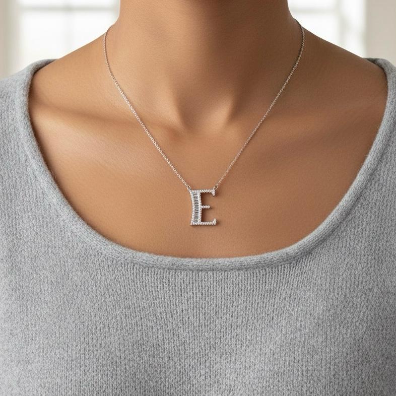 E Harfi İthal Gümüş Kolye