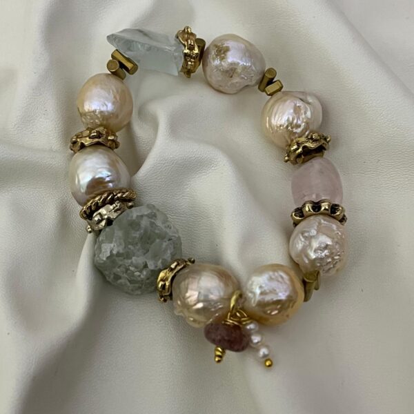 İnci Akuamarin Tasarım Doğal Taş Bileklik – Zarafeti ve Sakinliği Bileğinizde Taşıyın
