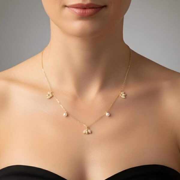 🐝 İncili Arı Gold Gümüş Kolye – Zarafetin ve Doğanın Işıltısı