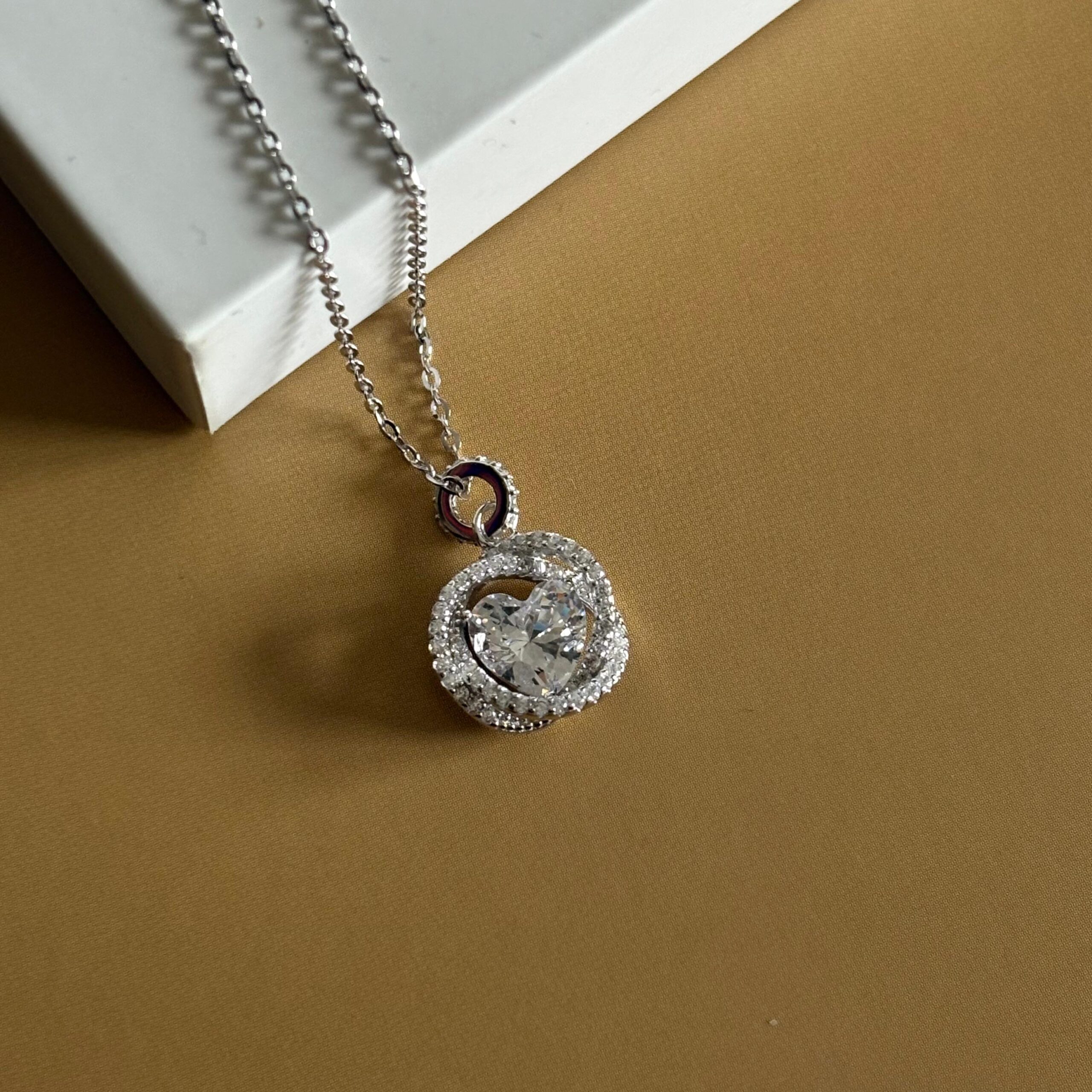 Şıklığıyla göz kamaştıran bu özel tasarım, merkezindeki parlak kalp kesim taşı ve onu çevreleyen iç içe geçmiş ışıltılı halkalarıyla sevginin bitmeyen döngüsünü simgeliyor. Hem modern hem de romantik bir çizgiye sahip olan Kalp Çemberi, her tarz kıyafetle kusursuz bir uyum yakalar.
