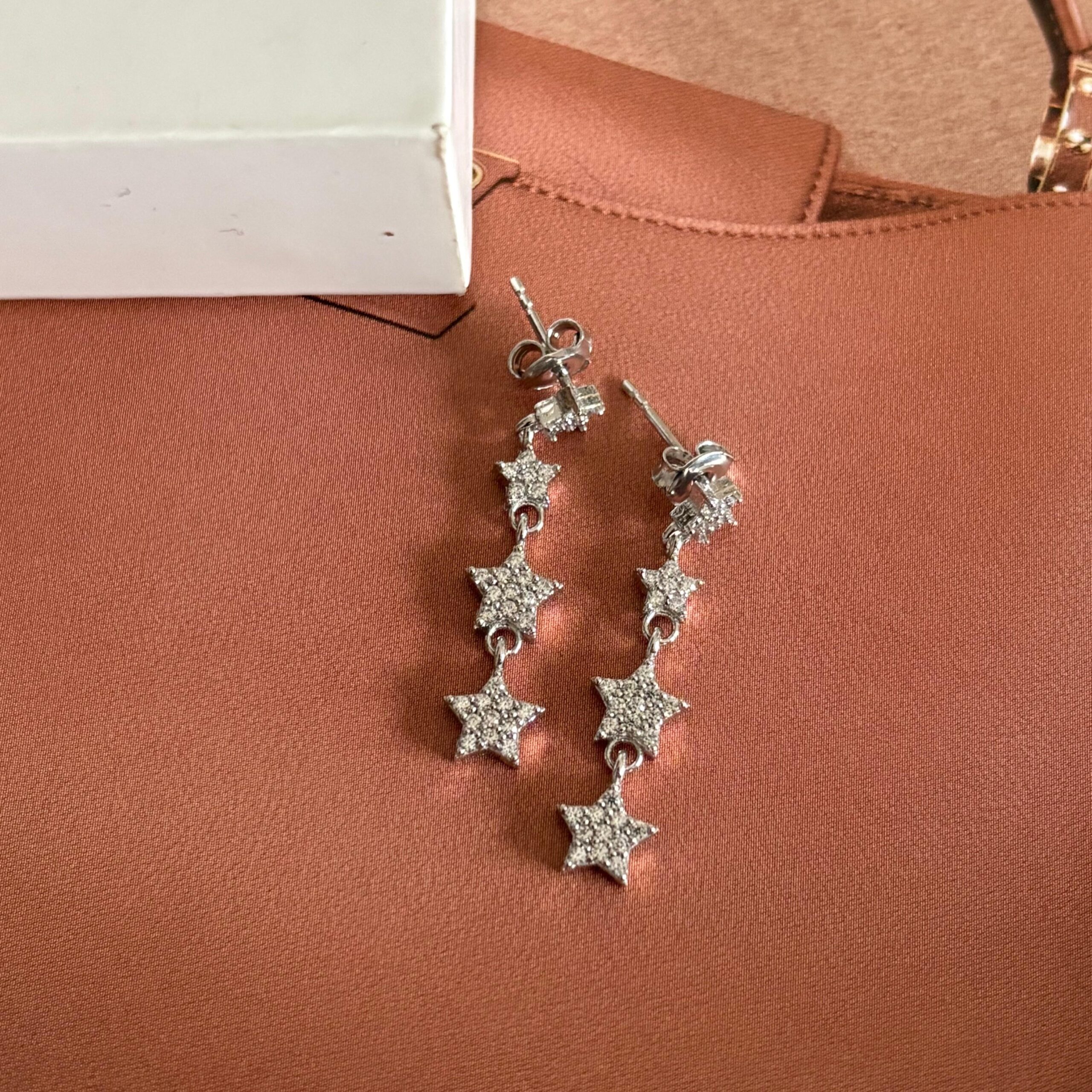 Şıklığı ve zarafeti bir araya getiriyor. 925 ayar gümüş üzerine gold kaplama ile tasarlanan bu modern küpe, hem günlük kombinlerinizde hem de özel davetlerde stilinizi tamamlayan göz alıcı bir aksesuardır. Üçlü sarkıt tasarımıyla hareketli ve ışıltılı bir görünüm sunarken, hafif yapısı sayesinde gün boyu rahatlıkla kullanılabilir.