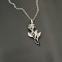 Doğanın ilhamını taşıyan bu zarif tasarım ile şıklığınızı ön plana çıkarın. Baget taşlı çiçek gümüş kolye, zamansız bir parça olarak takı koleksiyonunuzun favorisi olacak.