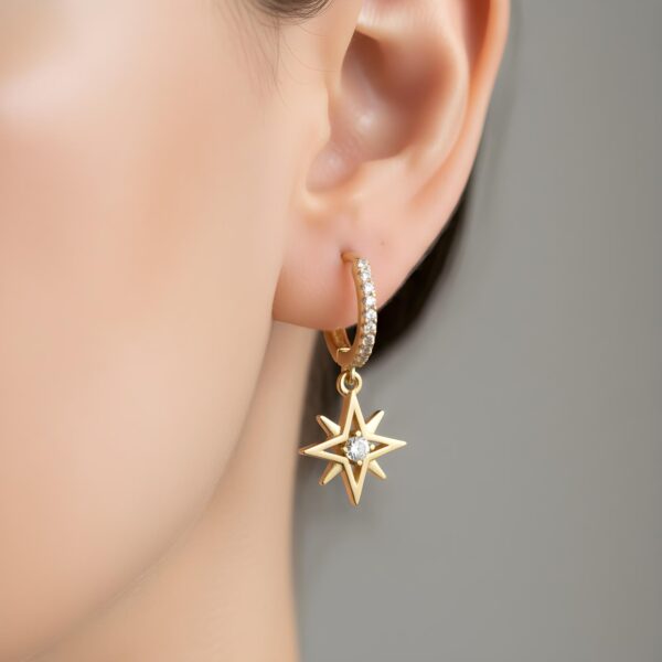 Kutup Yıldızı Detaylı Gold Gümüş Küpe