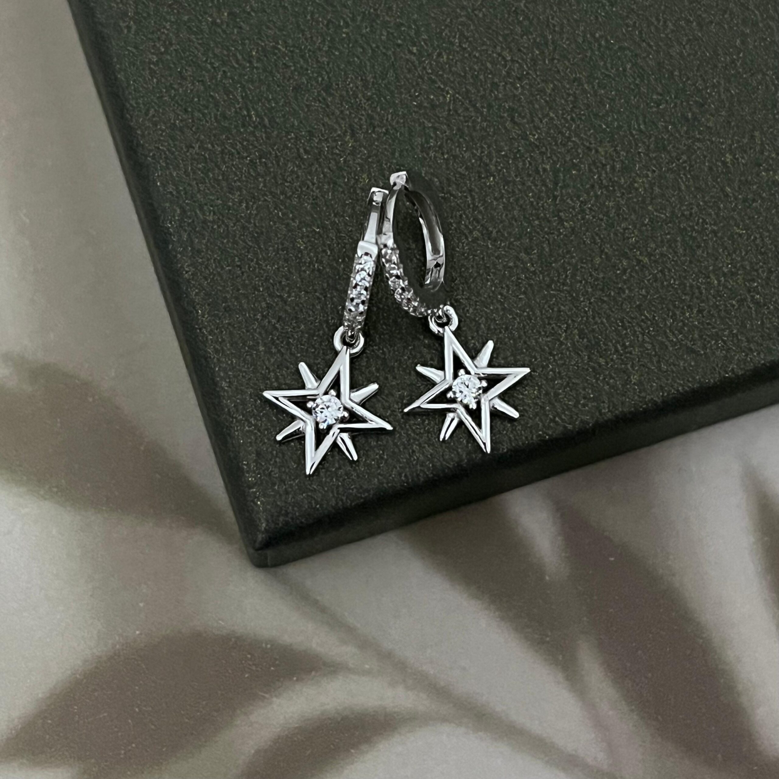 Kutup Yıldızı Detaylı Gümüş Küpe