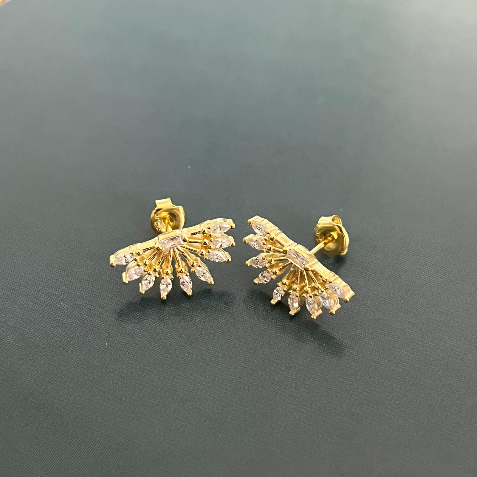 Sıralı Taşlı Yelpaze Gold Gümüş Küpe
